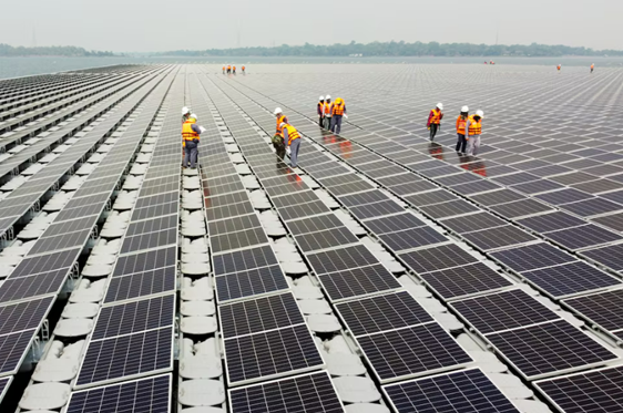 | Các tấm pin mặt trời trên mặt nước ở Đập Sirindhorn ở Ubon Ratchathani, Thái Lan. Ảnh Reuters |