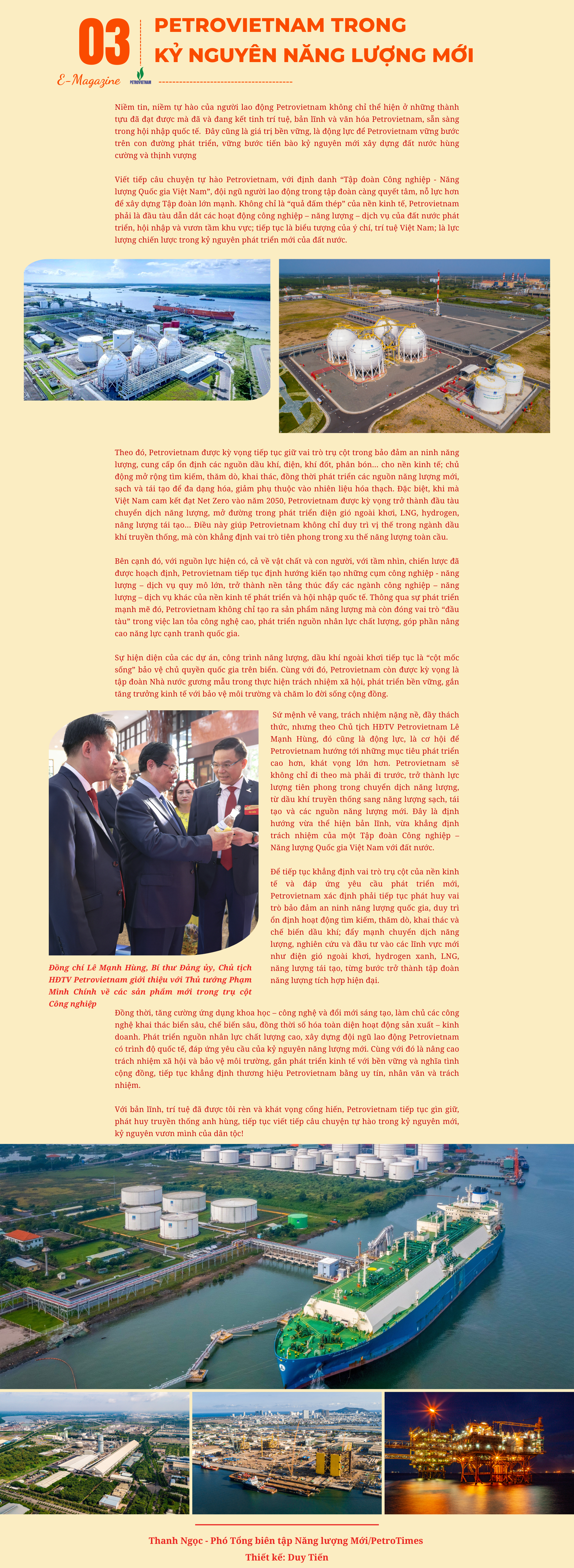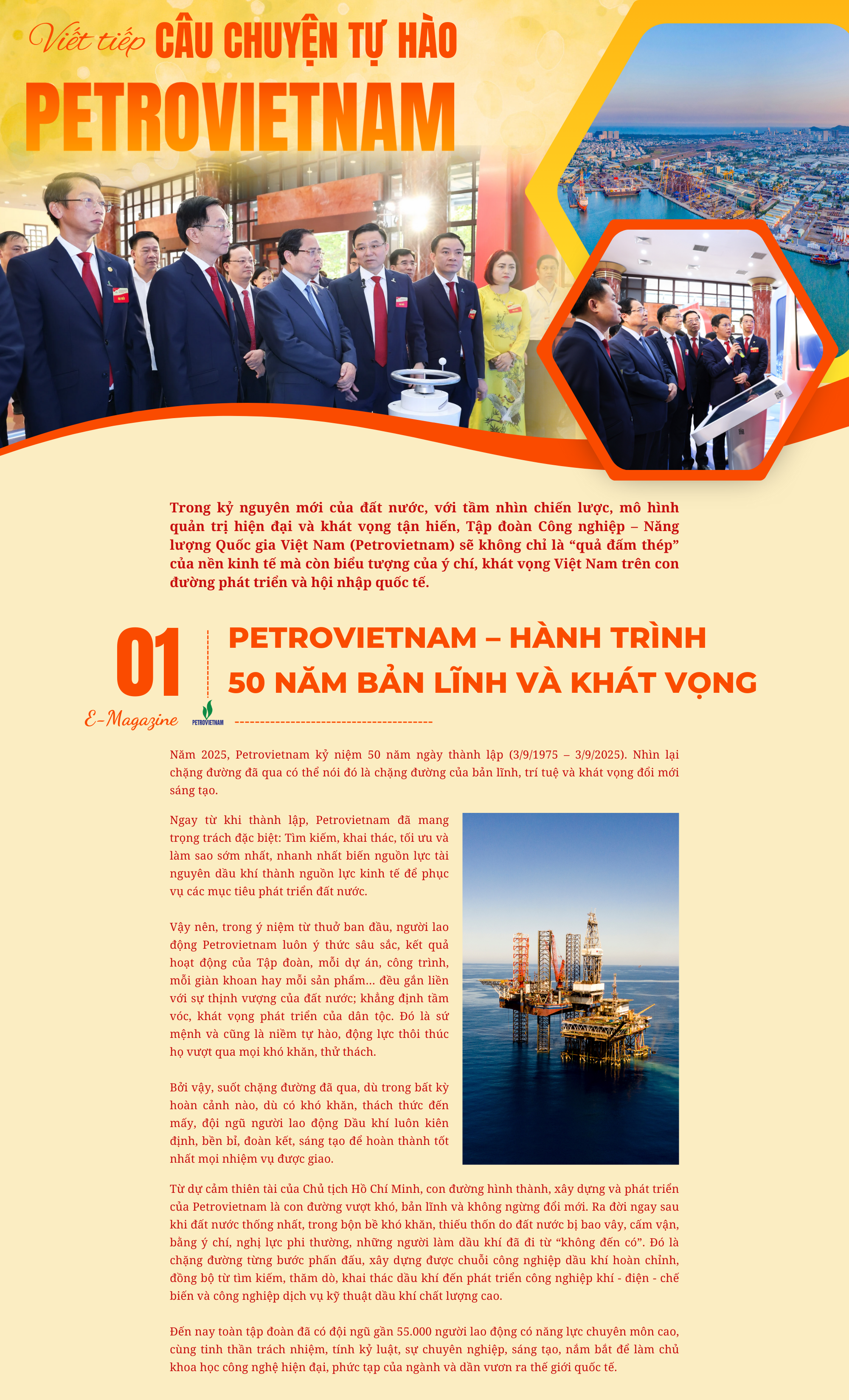 (PetroTimes) - Trong hành trình 50 năm hình thành và phát triển, Tập đoàn Công nghiệp - Năng lượng Quốc gia Việt Nam (Petrovietnam) luôn gắn với những bước ngoặt lớn của đất nước, vừa là trụ cột của nền kinh tế, vừa là lực lượng tiên phong trong bảo đảm an ninh năng lượng quốc gia. Ở giai đoạn đất nước đặt mục tiêu tăng trưởng cao, chuyển dịch năng lượng xanh và hội nhập quốc tế sâu rộng, Tập đoàn đứng trước yêu cầu phát triển nhanh, bền vững, Bí thư Đảng ủy, Chủ tịch HĐTV Petrovietnam Lê Mạnh Hùng đã nhấn mạnh thông điệp: "Nói ít - Nghĩ nhiều - Làm nhiều - Tốc độ nhanh - Hiệu quả cao".